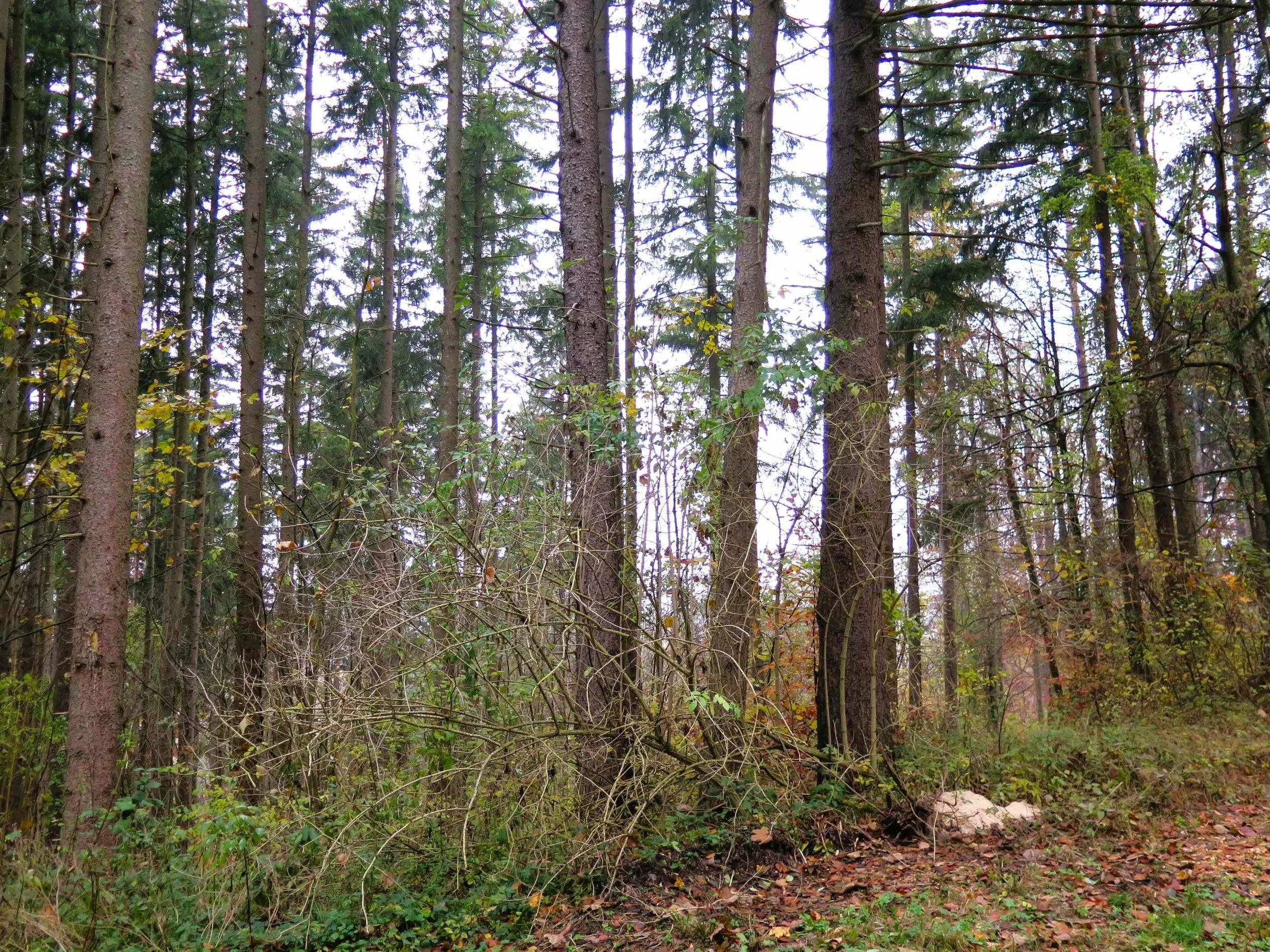 mittlere Hanglage, großteils Fichtenholz, aber auch niederer nachwachsender Laubwald,